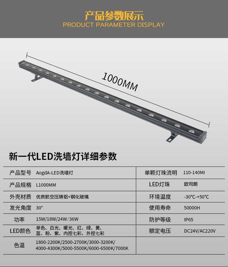 24W:長(zhǎng)度為1米;36W:長(zhǎng)度為1米;