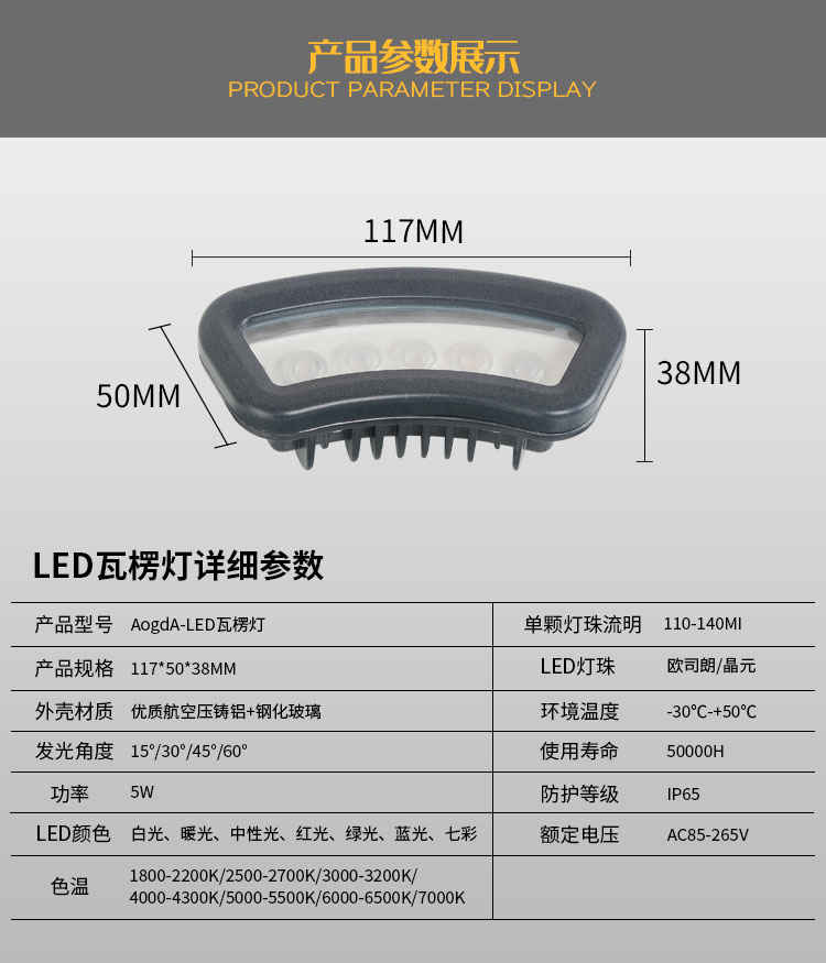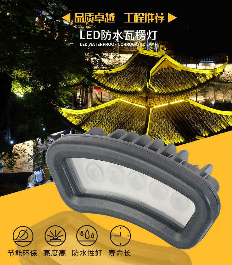 led瓦楞燈月牙燈屋頂涼亭古建筑門(mén)樓投光射燈