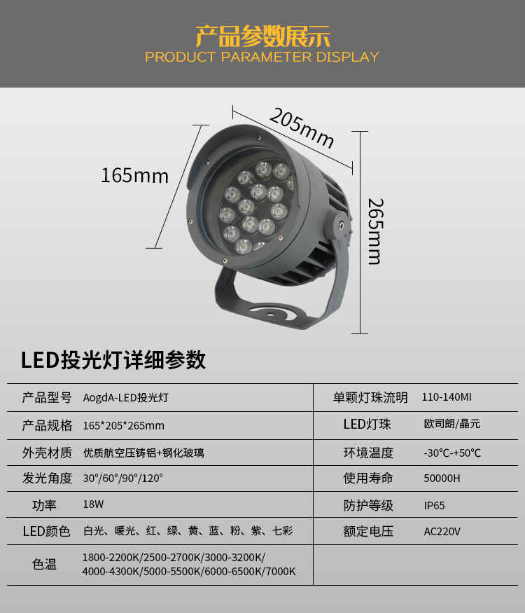 適用場(chǎng)地:戶外大樓墻體亮化;橋梁照明工程;古建筑物照明;公園樹(shù)木亮化