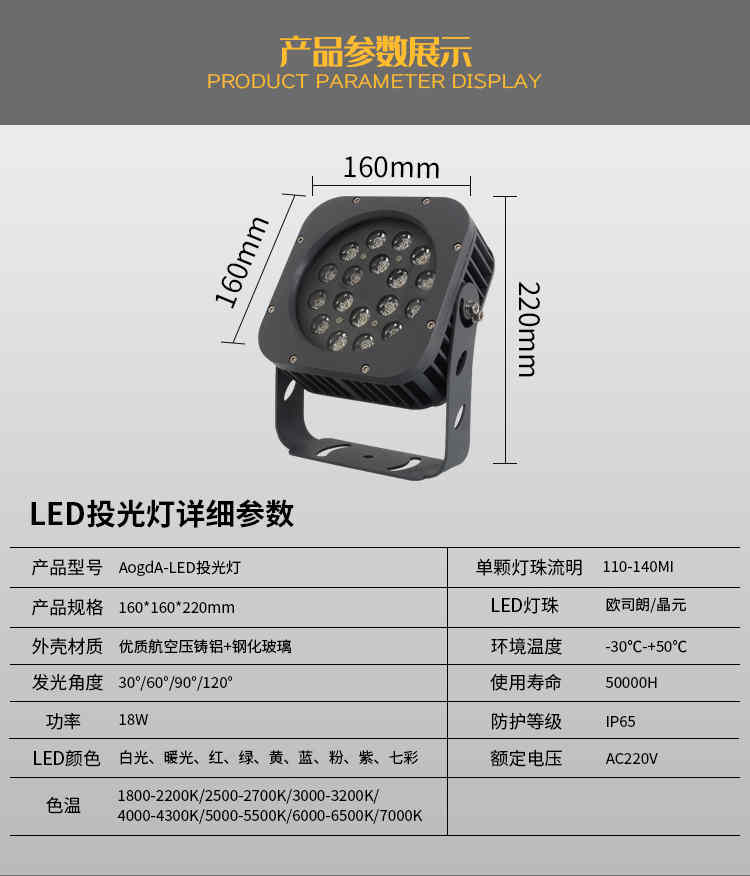 產(chǎn)品品名:新款LED投光燈;聚光投光燈