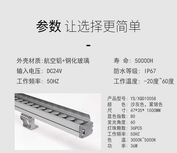 24W:長(zhǎng)度為1米;36W:長(zhǎng)度為1米;